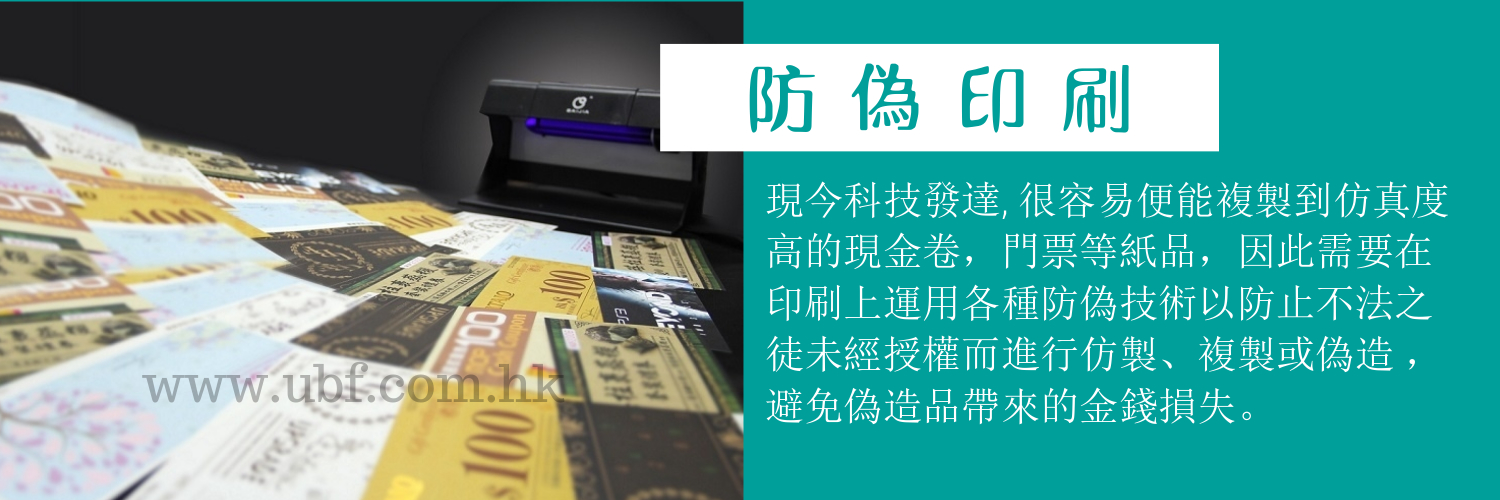 防偽印刷是透過不同防偽印刷技術,令產品被偽造及複製使用的機會減至最低。